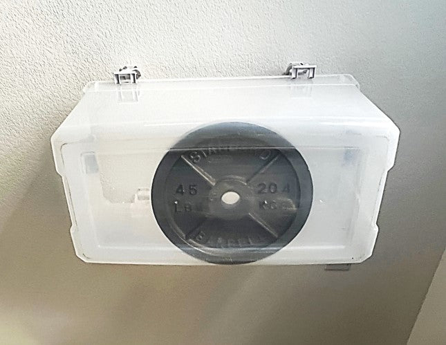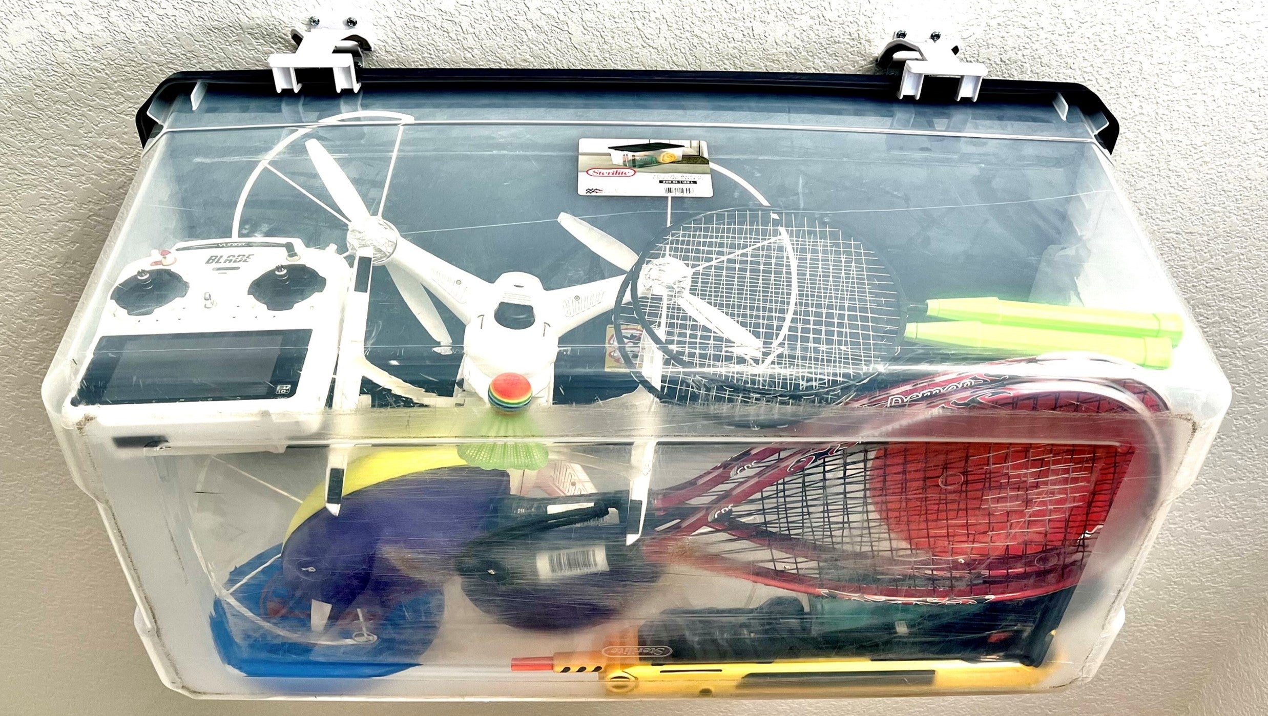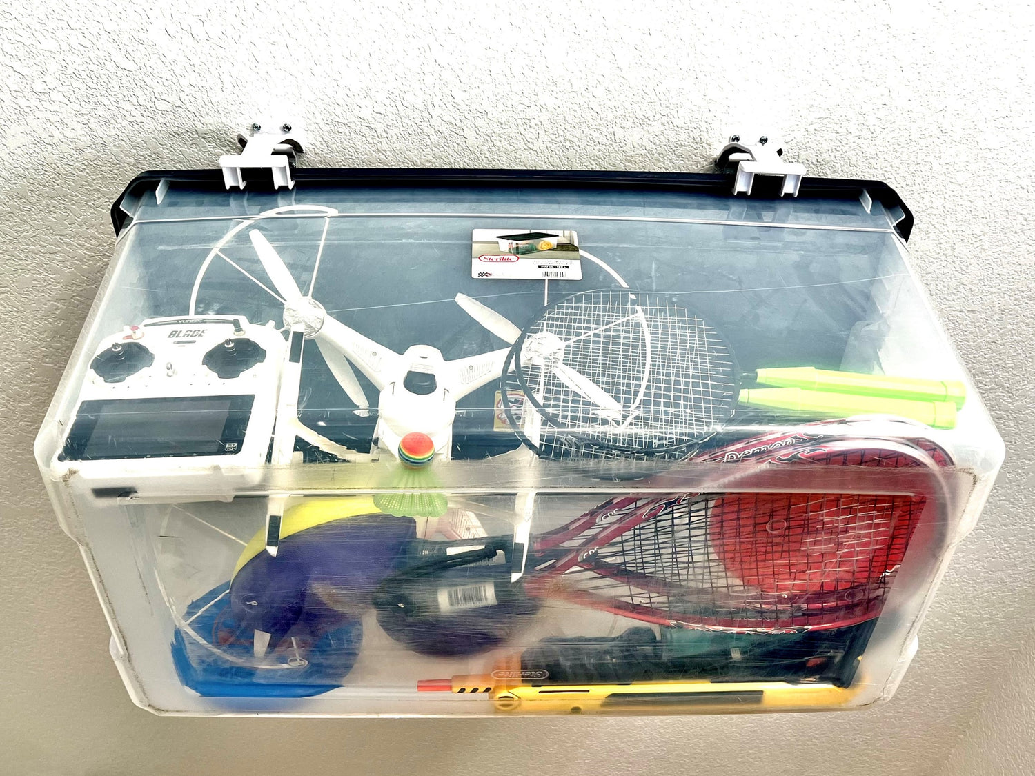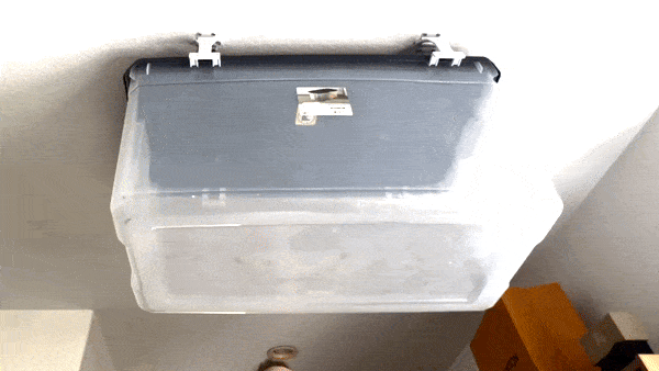 HoverHooks attach directly to your ceiling and capture the underneath rim of virtually all plastic bins (i.e., totes, containers, boxes). You can easily store your bins out of the way directly above your head - like your box is hovering!