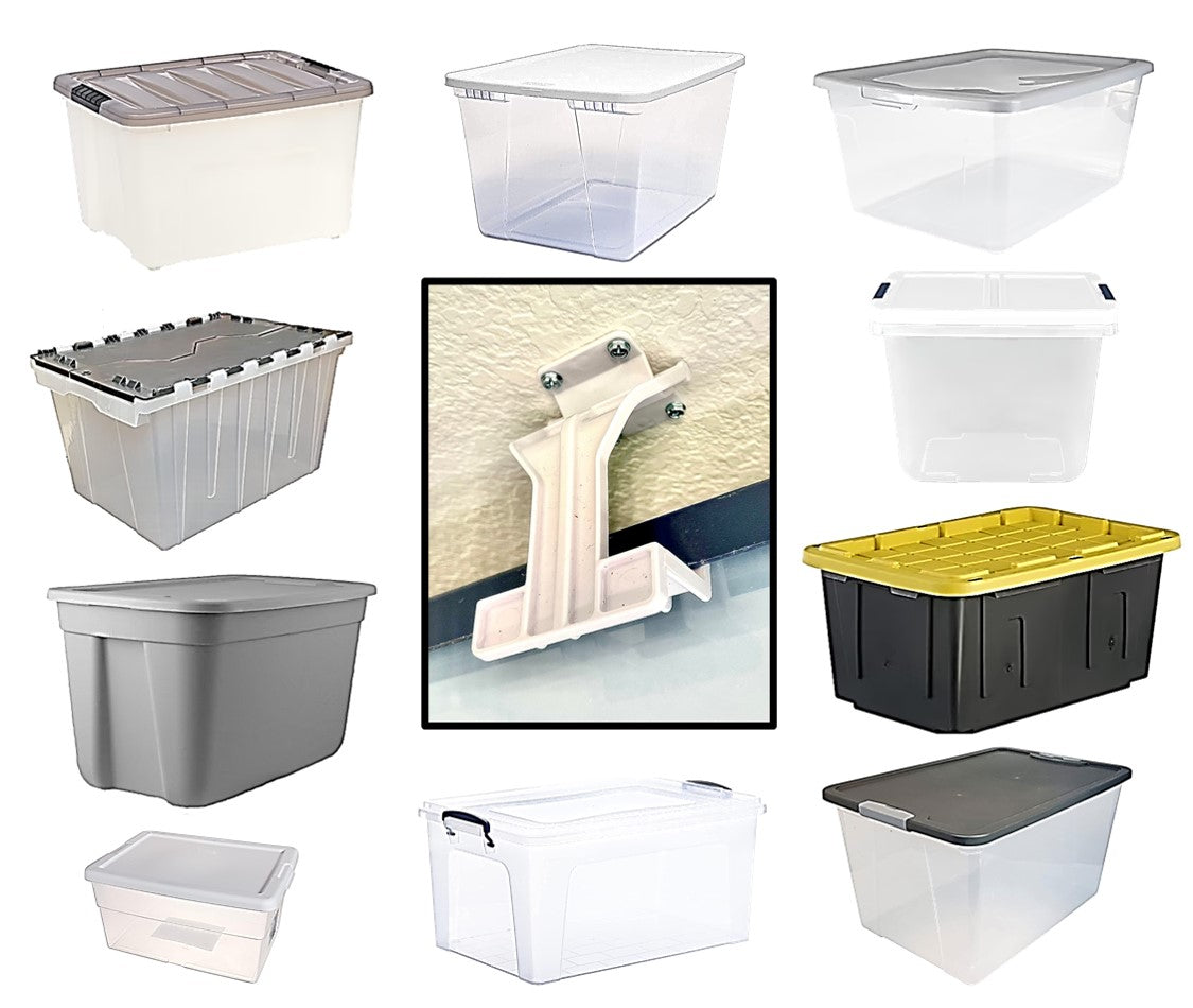 HoverHooks secure your bin to your ceiling by capturing the underside of the outside rim of each plastic bin. HoverHooks secure almost all plastic bins whether your bin is large or small, tall or short, wide or thin.